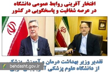 وزیر بهداشت در نامهای رسمی از دانشگاه علوم پزشکی ارومیه به دلیل موفقیت در اجرای قانون دسترسی آزاد به اطلاعات و کسب جایگاه شایسته تقدیر ...