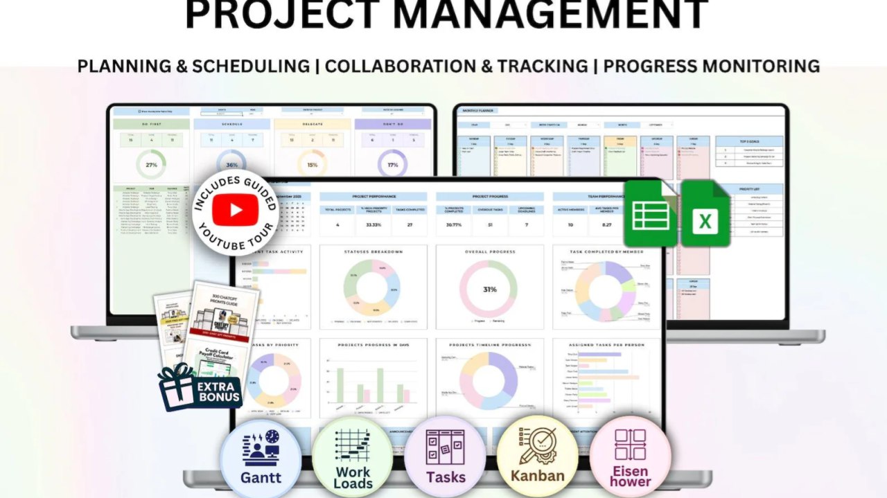 الگوی «All-in-One Project Management Template» در Google Sheets با هدف ایجاد یک فضای یکپارچه برای برنامه‌ریزی، اجرا و نظارت مداوم بر پیشرفت پروژه طراحی شده است.
